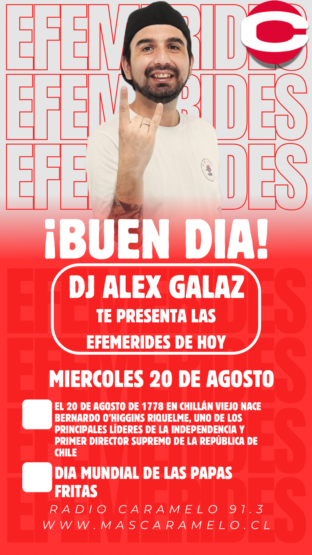 Dj Alex Galaz, dueño de las noches del fin de semana en la caramelo te deja las efemerides del Miércoles 20 de Agosto.